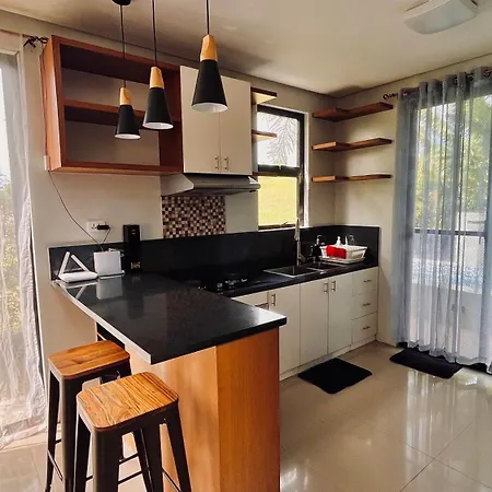 The Tagaytay City accommodation offers self-catering amenities, such as an equipped kitchenette, and a dining area for guests' convenience. The kitchen also offers an electric kettle, a refrigerator, and kitchenware.